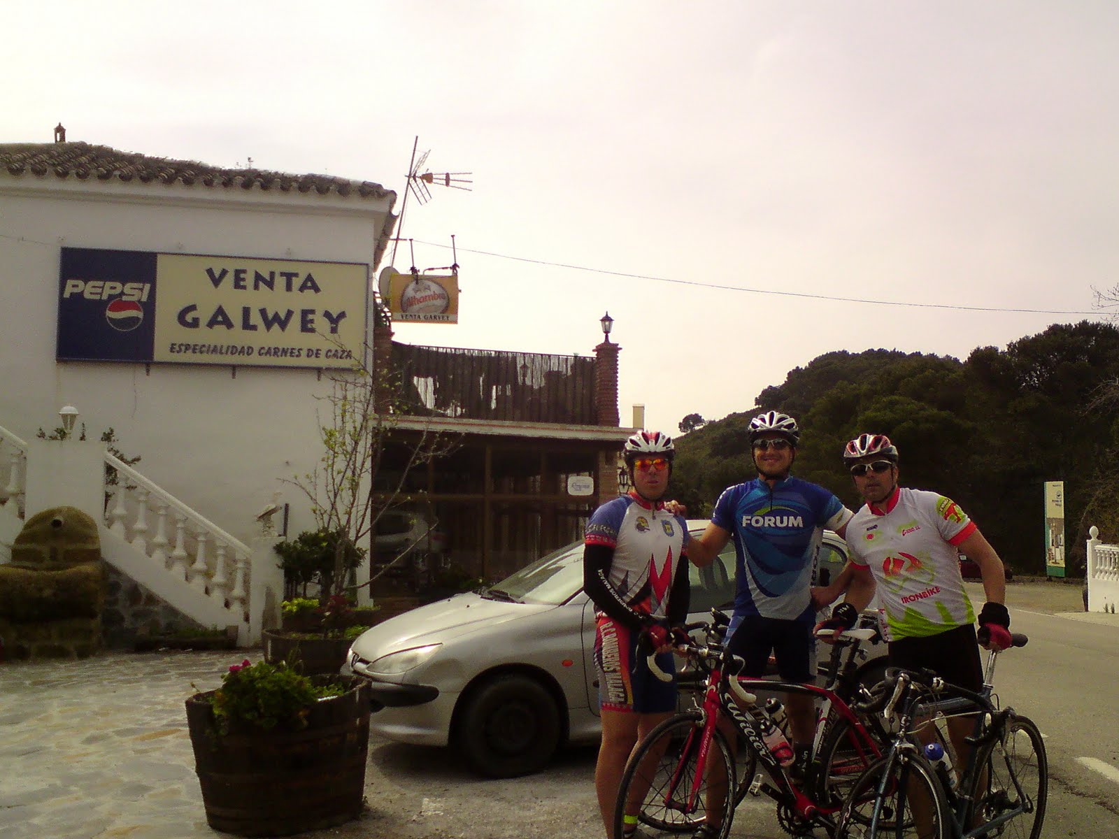 Aunque la salida estaba programada a Casarabonela, por votación popular se decidió hacer el vado del Álamo y vuelta por Álora, además nos acompañó el primo de Antonio y accedimos a la petición de hacer algo más suave, el día tampoco estaba para muchas alegrías y sabíamos que a la vuelta tendríamos que trabajar de lo lindo. Dicho y hecho, además nos acompaño un chavalote con pinta de maquinón que nos hizo bastante amena la ruta, aunque el se separo en las Mellizas, pues iba para el Chorro. La vuelta fue otro cantar.......con el Levante castigador los 100 kms parecieron 150...pero bueno todos trabajamos y el entreno para la buchaca. Esperemos que en la próxima salida no haga viento, porque el otro día por la costa con el poniente y hoy con el levante..........hasta los.......